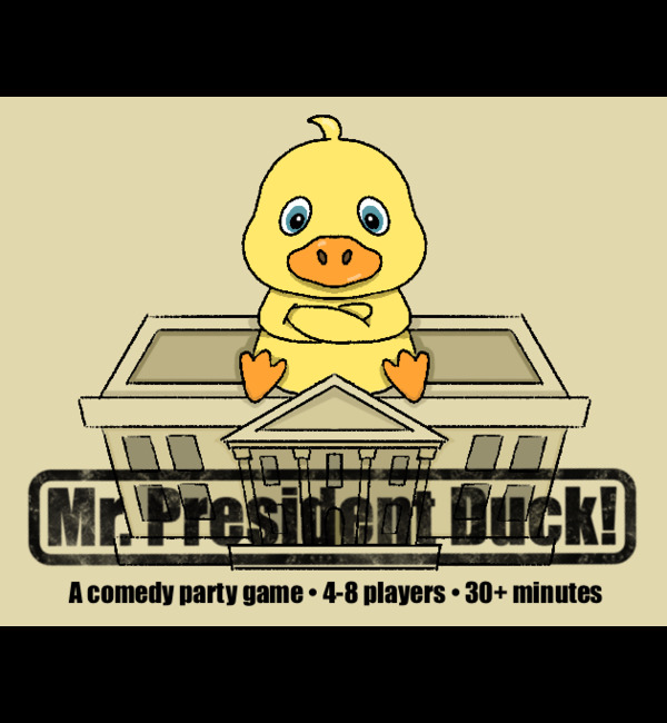 Mr. President Duck! is a party comedy card game where players take on the roles of Mr. President, newly hired Secret Service agents at the Yellow House, and a Gooseassin who has infiltrated their ranks. Players use absurd item cards to attack one another while playing into the roles and hidden traits.